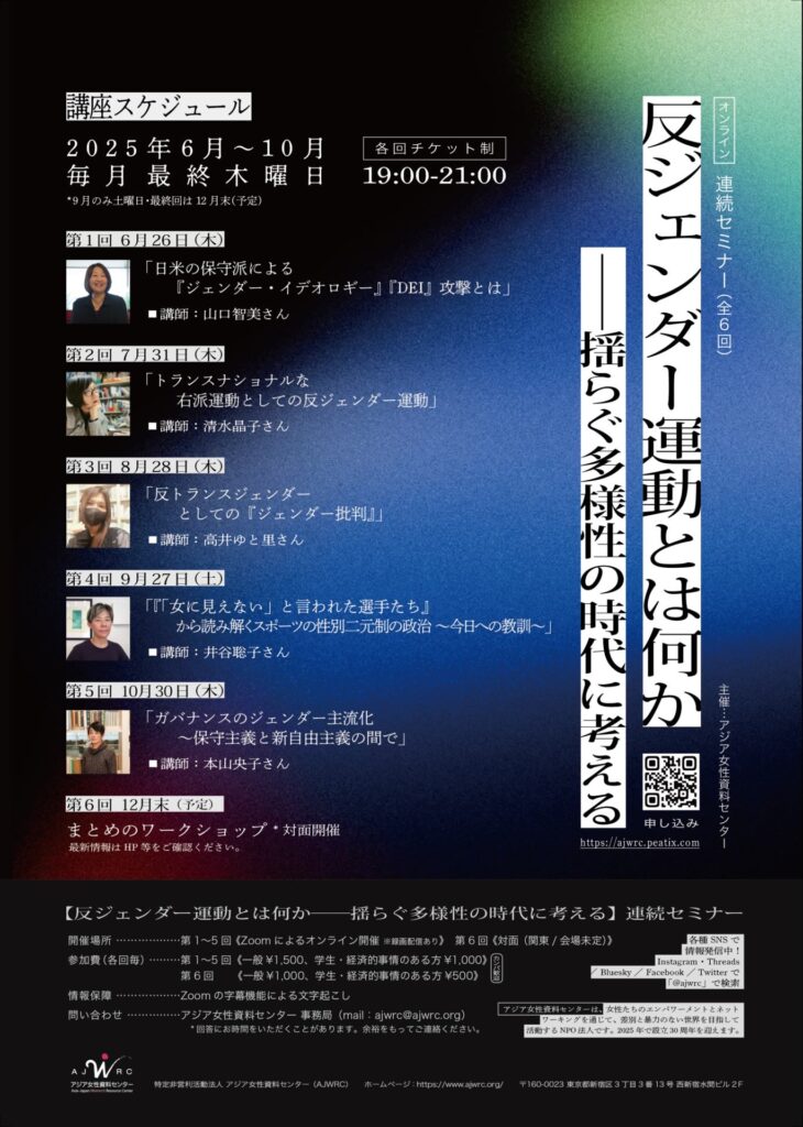 2025年8月28日。アジア女性資料センターの連続講座「反ジェンダー運動とは何か」の第3回講師を務めました。演題は「反トランスジェンダーとしてのジェンダー批判」で、ここでいう「ジェンダー批判」とは Gender Critical (Feminism) を指します。